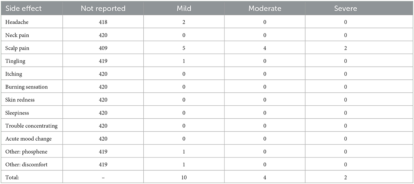 Table 4. Reported tDCS side effects out of a total of 420 assigned sessions.
